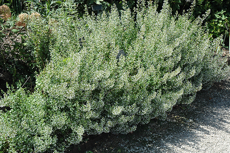 Montrose White Dwarf Calamint will grow to be about 9 inches tall at maturity extending to 12 inches tall with the flowers, with a spread of 15 inches. It grows at a medium rate, and under ideal conditions can be expected to live for approximately 10 years. As an herbaceous perennial, this plant will usually die back to the crown each winter, and will regrow from the base each spring. Be careful not to disturb the crown in late winter when it may not be readily seen!