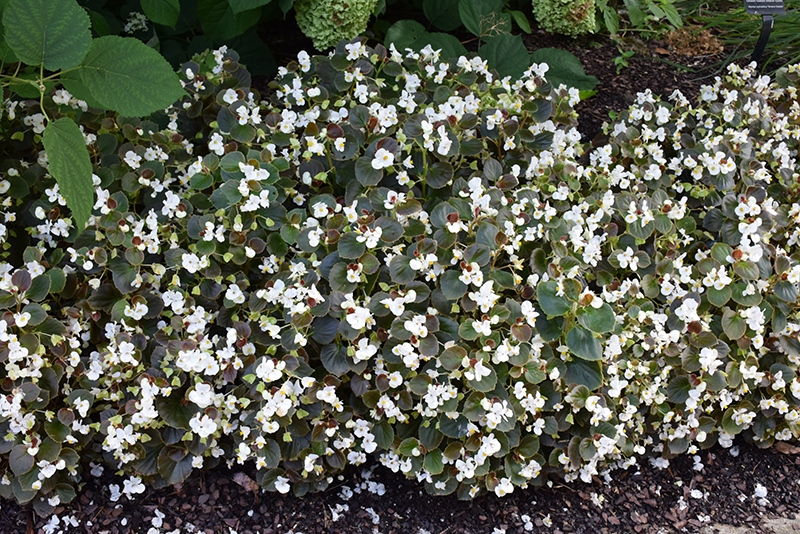 Cocktail® Whiskey® Begonia features dainty white orchid-like flowers at the ends of the stems from mid spring to mid fall. Its attractive succulent heart-shaped leaves remain dark green in colour with hints of coppery-bronze throughout the year.