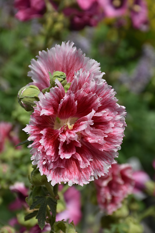Beautiful, double cerise flowers with rose pink ruffled edges on a more compact plant; this biennial is tolerant to the natural toxin formed by the roots of Black Walnut, but can be susceptible to Japanese beetles; plant in full sun for better growth
