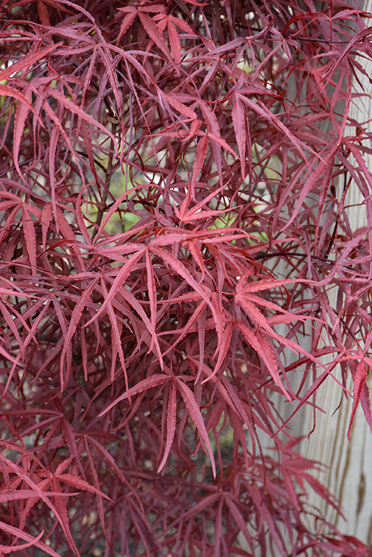 This beauty has delicate long and narrowly lobed leaves of red, with orange and red fall color; upright growth habit is almost columnar when young, becoming broader with age; ideal for general garden use
