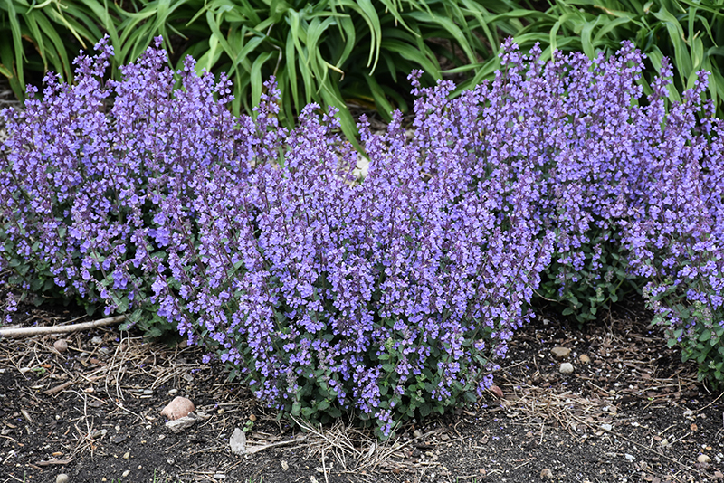 Cat's Pajamas Catmint will grow to be about 12 inches tall at maturity, with a spread of 20 inches. When grown in masses or used as a bedding plant, individual plants should be spaced approximately 18 inches apart. Its foliage tends to remain dense right to the ground, not requiring facer plants in front. It grows at a fast rate, and under ideal conditions can be expected to live for approximately 10 years. As an herbaceous perennial, this plant will usually die back to the crown each winter, and will regrow from the base each spring. Be careful not to disturb the crown in late winter when it may not be readily seen!