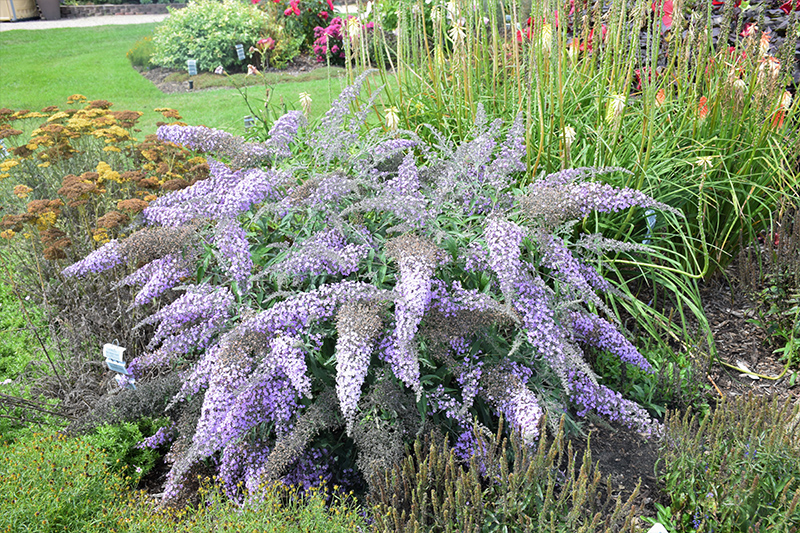 A compact garden plant with huge, arching light lavender and purple flower spikes in summer that bloom profusely; attracts butterflies; may treat as a perennial and cut it back to the ground each spring as it regrows vigorously and blooms on new wood