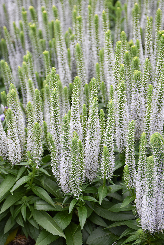 Snow Candles Spike Speedwell will grow to be about 12 inches tall at maturity extending to 16 inches tall with the flowers, with a spread of 12 inches. When grown in masses or used as a bedding plant, individual plants should be spaced approximately 10 inches apart. Its foliage tends to remain dense right to the ground, not requiring facer plants in front. It grows at a medium rate, and under ideal conditions can be expected to live for approximately 8 years. As an evegreen perennial, this plant will typically keep its form and foliage year-round.