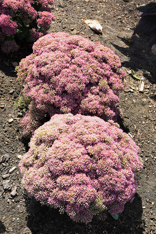 A mounded, billowy stonecrop, producing a puffy dome of bright rose-pink flowers in late summer to early fall, over succulent blue-green foliage; drought tolerant and does best in poor soils; an excellent choice for late summer color in the garden