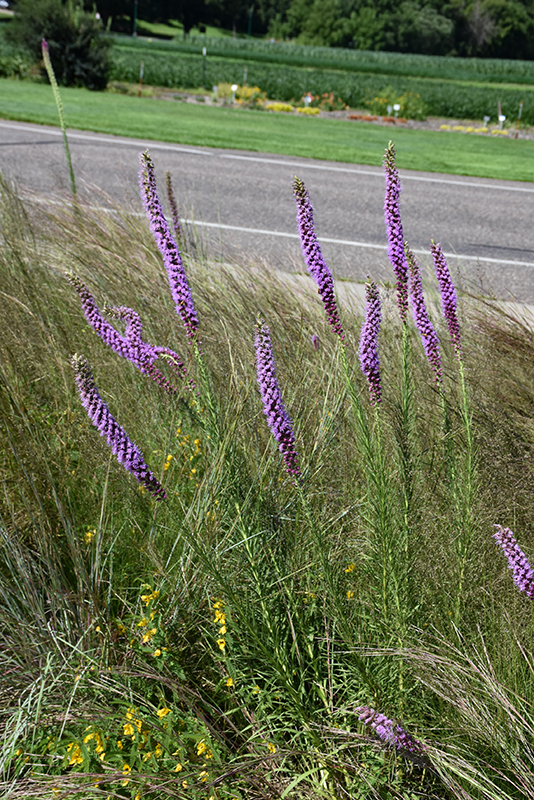 Prairie Blazing Star is an herbaceous perennial with a rigidly upright and towering form. Its relatively fine texture sets it apart from other garden plants with less refined foliage.
