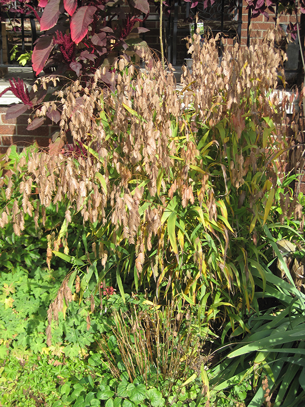 Northern Sea Oats is primarily grown for its highly ornamental fruit. It produces abundant clusters of purple hop-like fruit from late summer to late fall. It grassy leaves are light green in colour. As an added bonus, the foliage turns a gorgeous coppery-bronze in the fall.